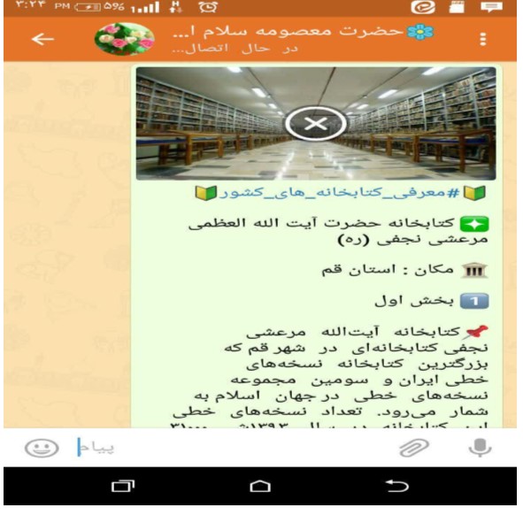 مدیر روابط عمومی مدرسه علمیه حضرت معصومه(س) از معرفی کتابخانه های کشور در گروه طلاب این مدرسه در پیام رسان ایتا خبر داد.