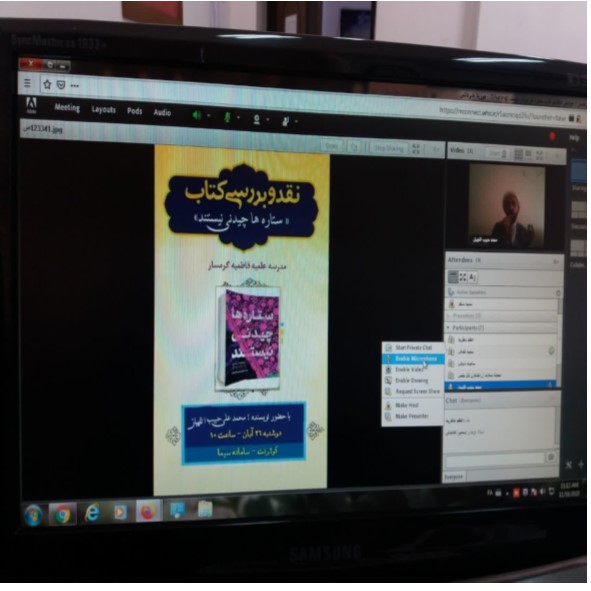 جلسه نقدوبررسی کتاب " ستاره ها چیدنی نیستند " در سامانه سیما به همت مدرسه علمیه فاطمیه گرمسار برگزار شد .