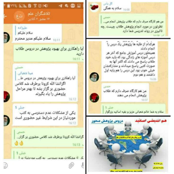 به گزارش معاونت پژوهش مدرسه علمیه فاطمه بنت اسدس بسطام در مورخ 26.9.99 به مناسبت هفته پژوهش هم اندیشی اساتیدبا عنوان دروس پژوهش محور در پیام رسان ایتا گروه عصر بیداری برگزار گردید.