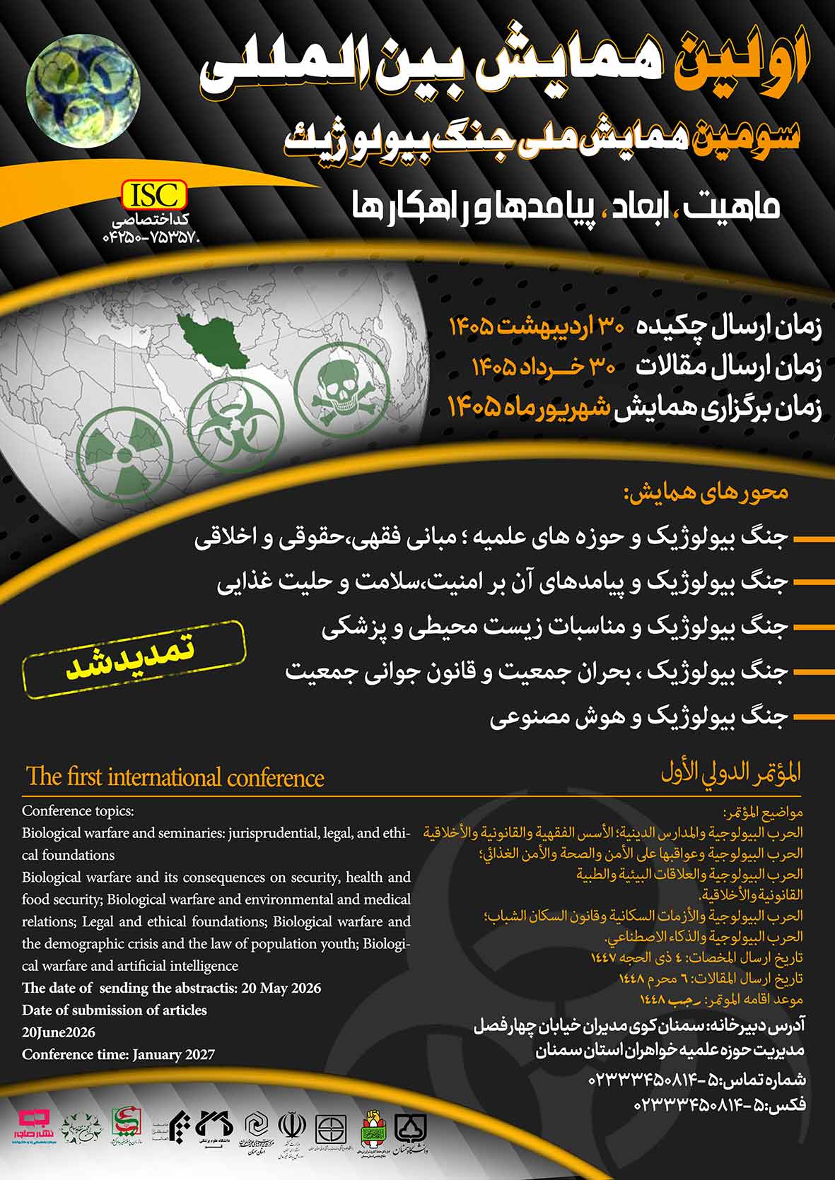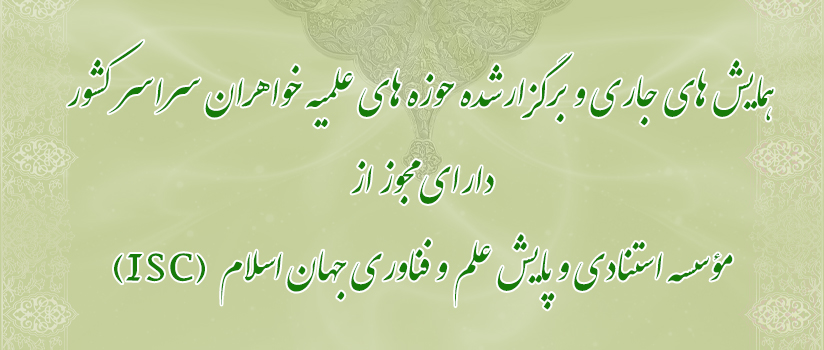 در این صفحه اطلاعات مورد نیاز پژوهشگران برای همایشهای معتبر (جاری و برگزار شده ) دارای مجوز ISC در حوزه علمیه خواهران منتشر می شود. اطلاعات همایش ها در دو بخش ارایه می گردد. ابتدا همایش های جاری و سپس همایش های برگزار شده. این صفحه متعلق به تمامی طلاب، پژوهشگران و اندیشمندانی است که دغدغه پیشبرد مرزهای دانش را در چارچوب تعالیم اسلامی دارند. لازم به ذکر است دسترسی به همایش های برگزارشده از طریق سامانه جامع ثبت و اطلاع رسانی همایش معتبر از لینک ذیل امکان پذیر است؛