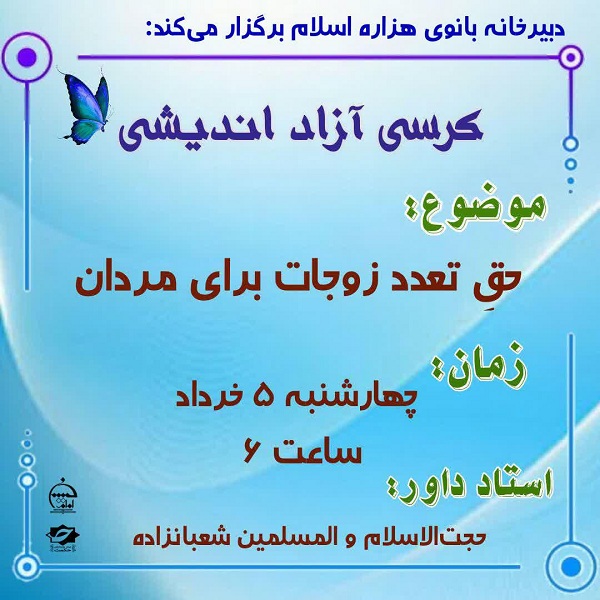 کرسی آزاد اندیشی حق تعدد زوجات در موسسه آموزش عالی حوزوی امام حسین علیه السلام یزد برگزار شد در این کرسی گروه موافق به طرح دیدگاههایخود پرداخته و اذعان داشتند: ریشه تاریخی چند همسری و فلسفه تعدد زوجات به لحاظ شریعت و اخلاق: