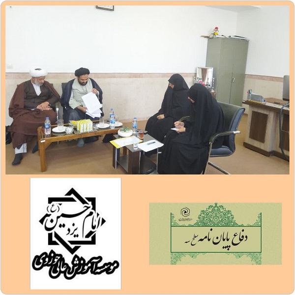 به گزارش معاونت پژوهش مؤسسه آموزش عالی حوزوی امام حسین علیه السلام یزد، جلسه دفاع پایان نامه سطح سه رشته تفسیر و علوم قرآن، سرکار خانم حمیده احمدی قوام آباد با عنوان « جهاد تبیین از منظر قرآن کریم » به راهنمایی حجت الاسلام و المسلمین جناب آقای غلامحسین رجبی و داوری حجت السلام و المسلمین جناب آقای سیداحمد میرخلیلی شنبه مورخ 1402/07/08 در مؤسسه آموزش عالی حوزوی امام حسین علیه السلام برگزار گردید.