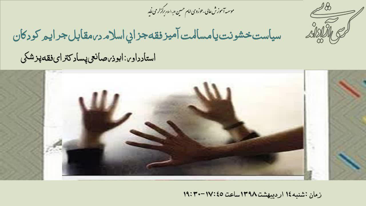 کرسی آزاد اندیشی با عنوان «سیاست خشونت آمیز یا مسالمت آمیز فقه جزایی اسلام در مقابل جرایم کودکان» توسط طلاب رشته فقه، با داوری دکتر ابوذر صانعی (پسا دکترای فقه پزشکی) در مؤسسه آموزش عالی حوزوی امام حسین (علیه السلام) برگزار شد.
